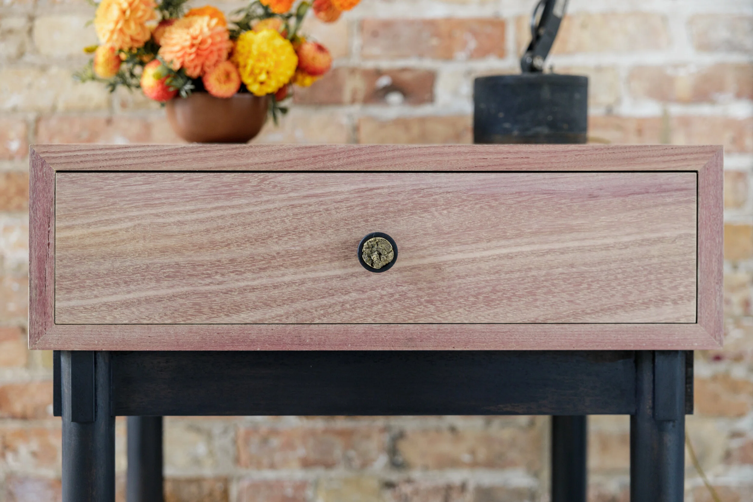 I've started experimenting with bleaching wood that is usually not bleached. Maybe some would enjoy a fully purple side table, but I thought it needed to become more of a mystery.
